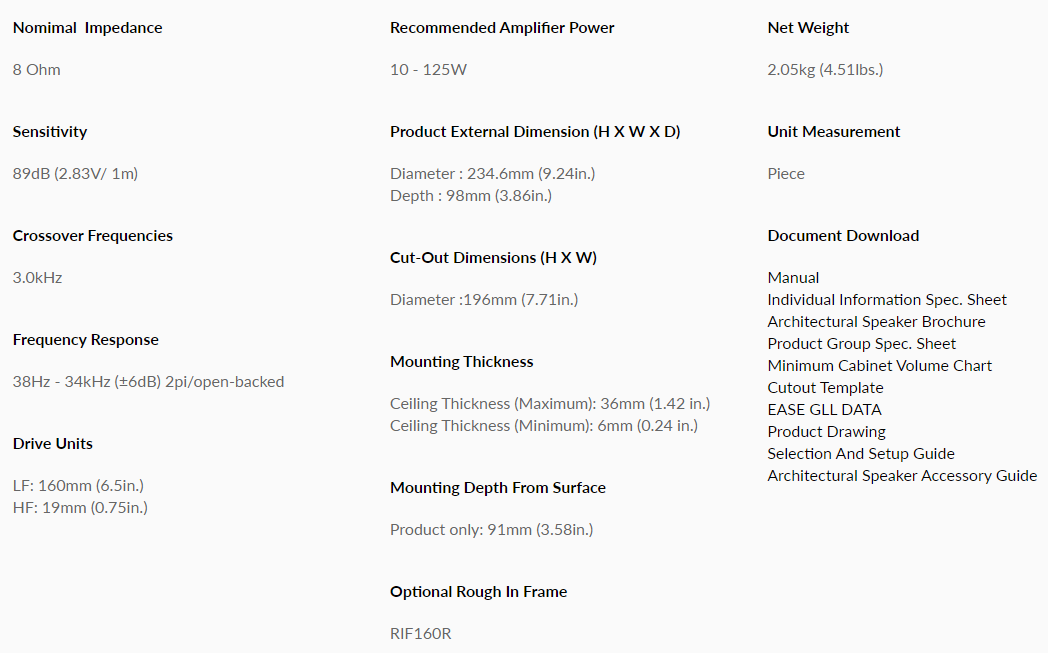 | Product Type | In-Ceiling Speakers |