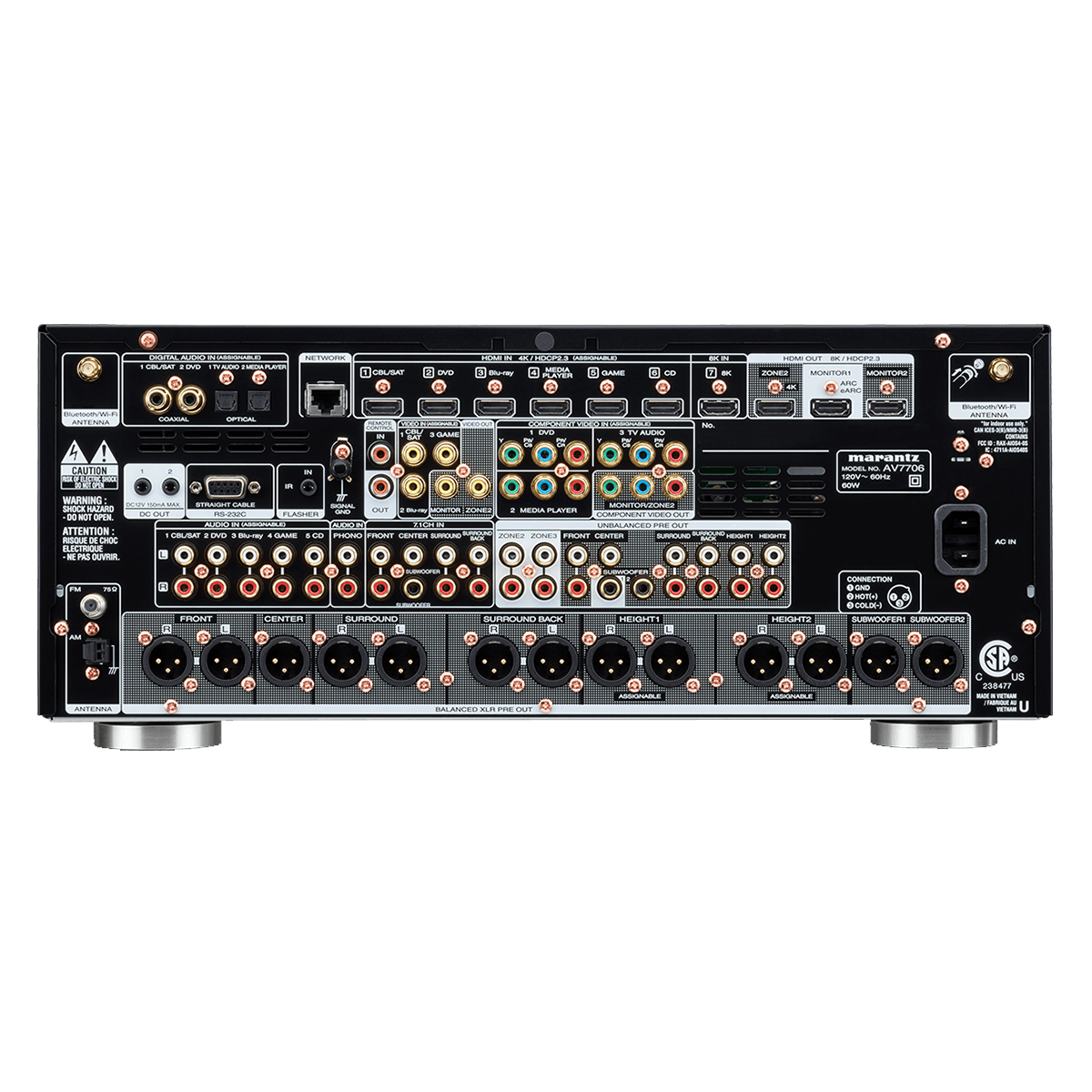 - 11.2 channel pre-outs: The AV7706 provides 11.2 channels of preamp outputs, which can be connected to separate power amplifiers for a truly immersive home theater experience. These outputs are available in both XLR and RCA formats, giving you flexibility in choosing your amplification.